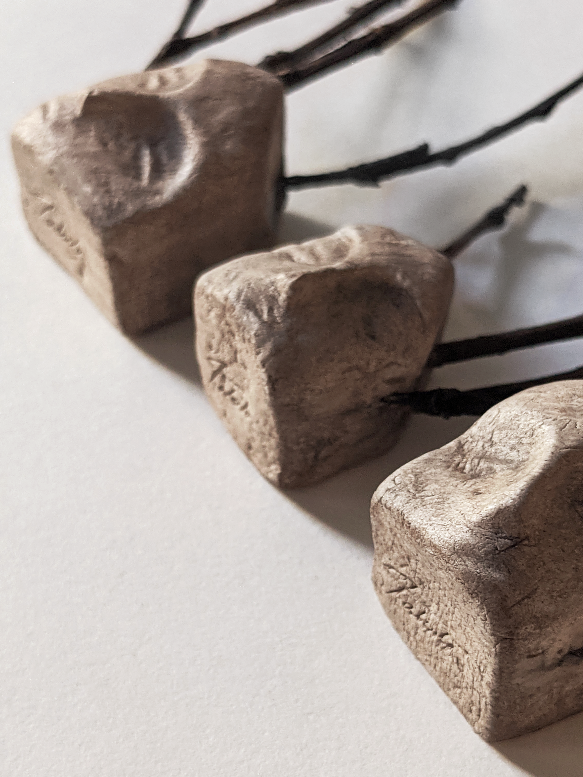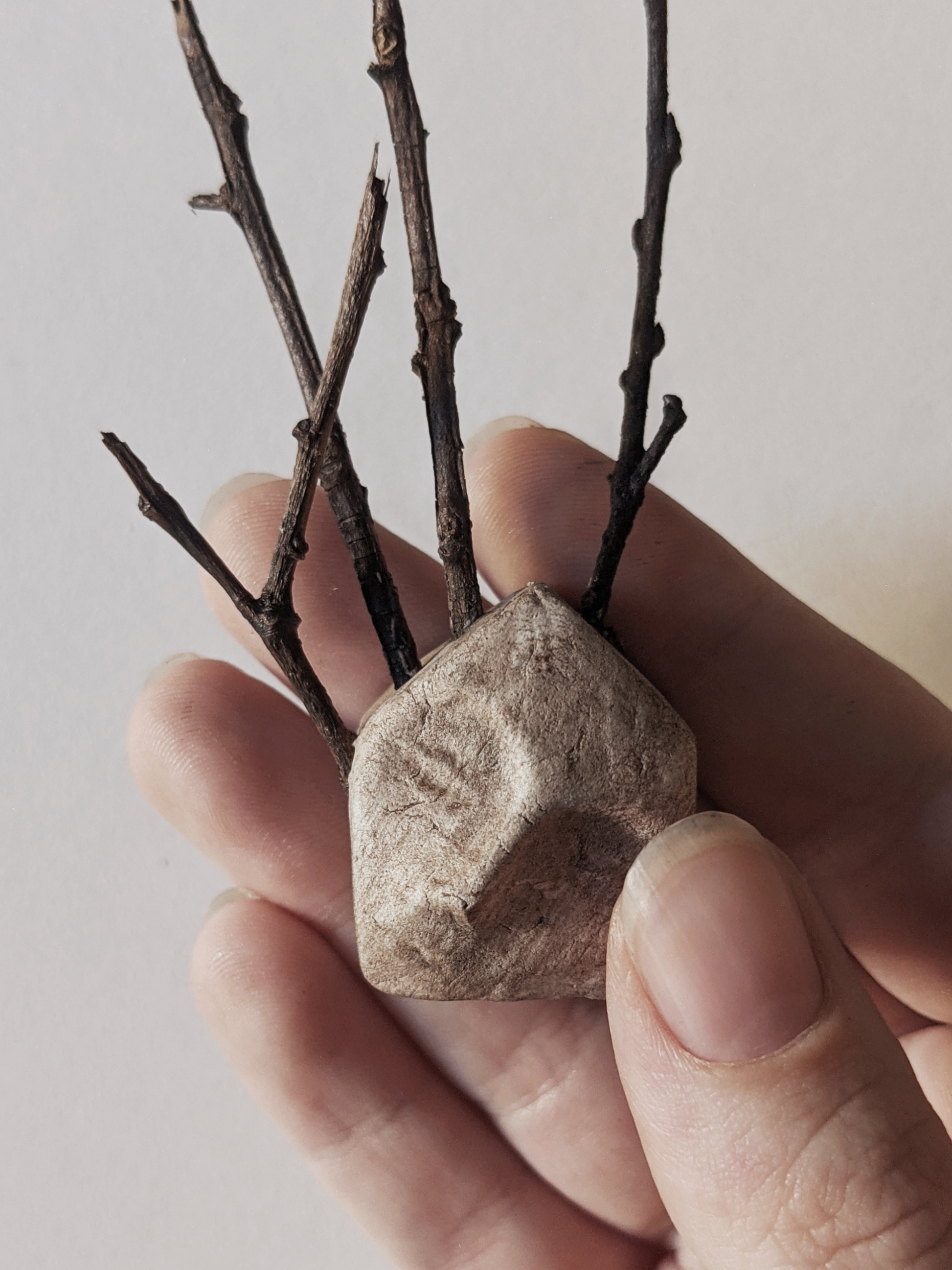 Wood, air dry clay, acrylic, and pastel